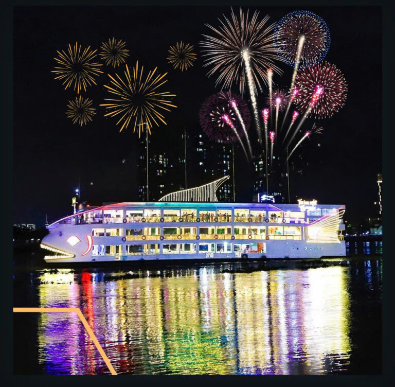 • 19h30: Tàu cập bến neo đậu để chuẩn bị phục vụ Quý khách xem Pháo Hoa.