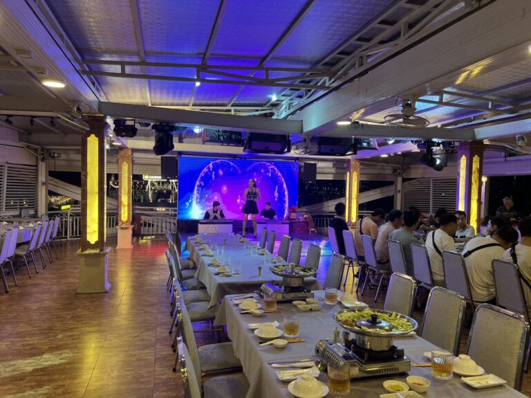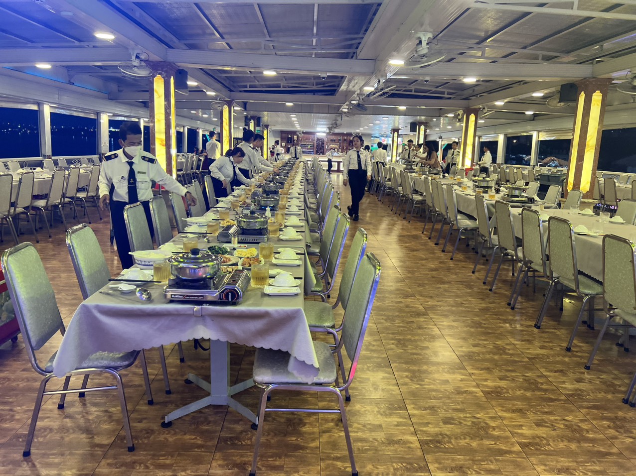 • 17h30 Tàu cập bến đón khách, 18h30 tàu xuất bến chạy du ngoạn, 19h30 Tàu cập bến.