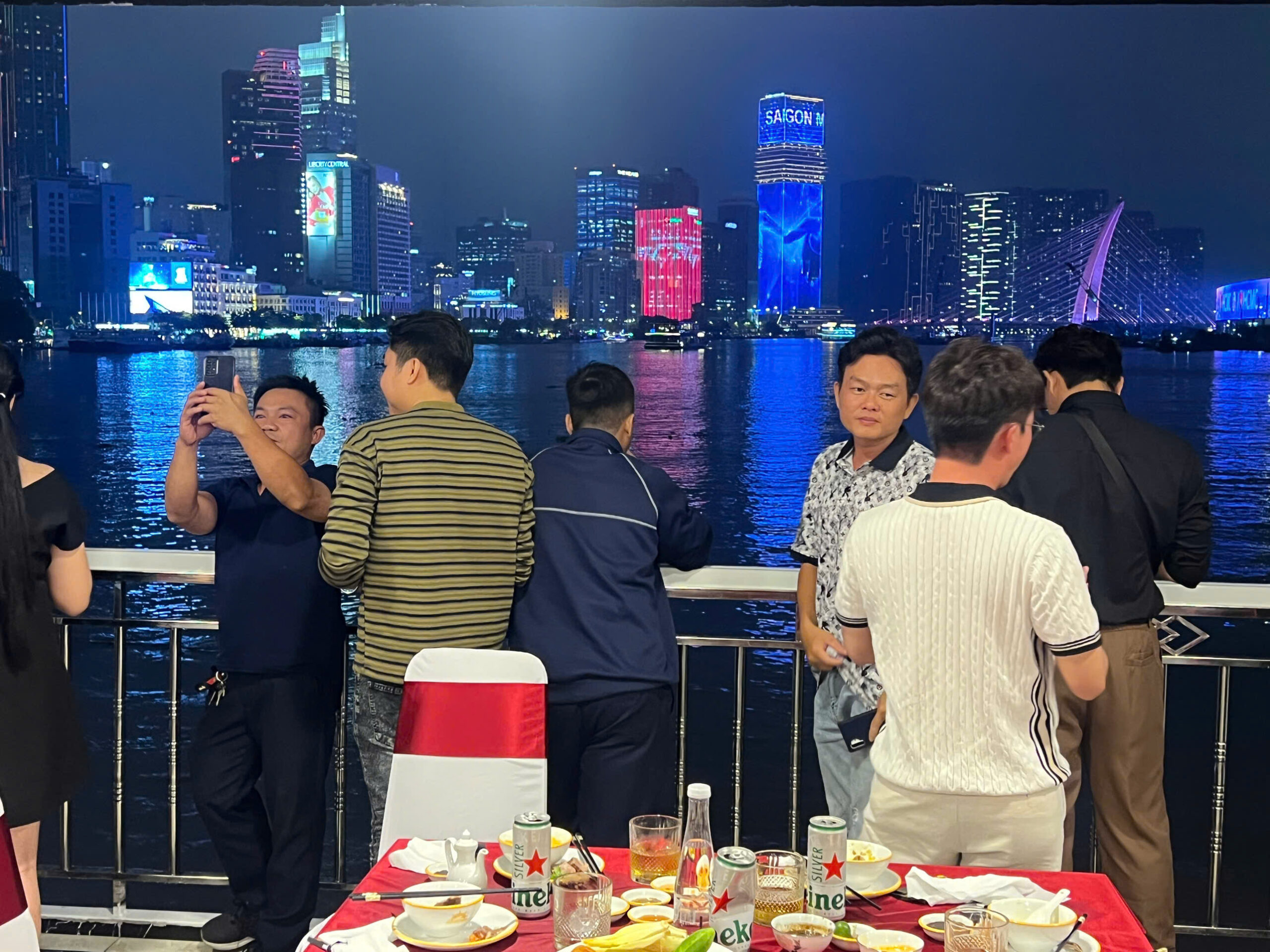- 20h00: Tàu Bến Nghé sẽ xuất bến chạy du ngoạn trên Sông Sài Gòn Về Đêm. Du khách sẽ thưởng ngoạn ngắm nhìn cảnh quan, đời sống cư dân hai bên bờ Sông Sài Gòn, cảm nhận sự khác biệt “ Trên Bến Dưới Thuyền” tại một Thành Phố hiện đại, trung tâm kinh tế của cả nước. Du Thuyền sẽ đi ngang qua các địa danh lịch sử như: Cảng Nhà Rồng ( nơi trước đây Bác Hồ ra đi tìm đường cứu nước), Bến Bạch Đằng ( Bến Ngự), cảng Khánh Hội, chạy hướng về cầu Phú Mỹ.