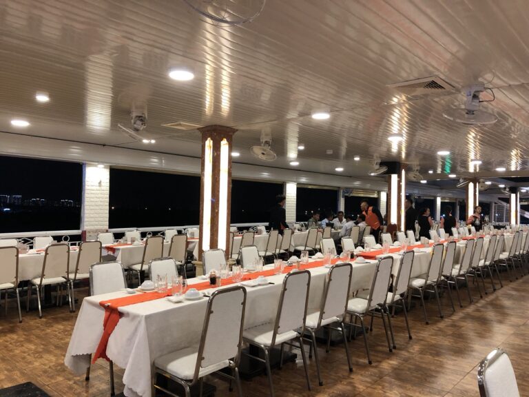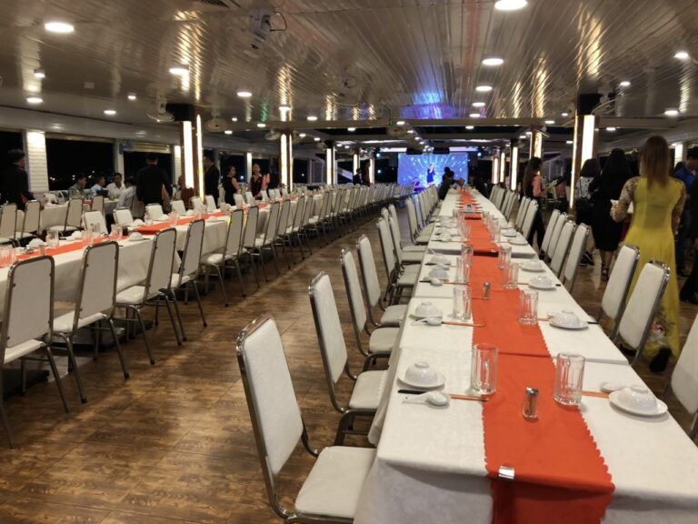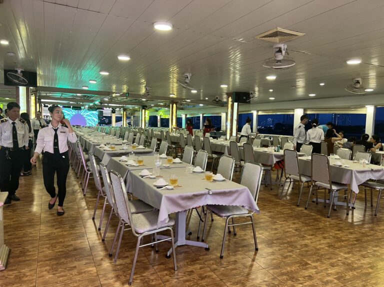 • 17h30 Tàu cập bến đón khách, 18h30 tàu xuất bến chạy du ngoạn, 19h30 Tàu cập bến.