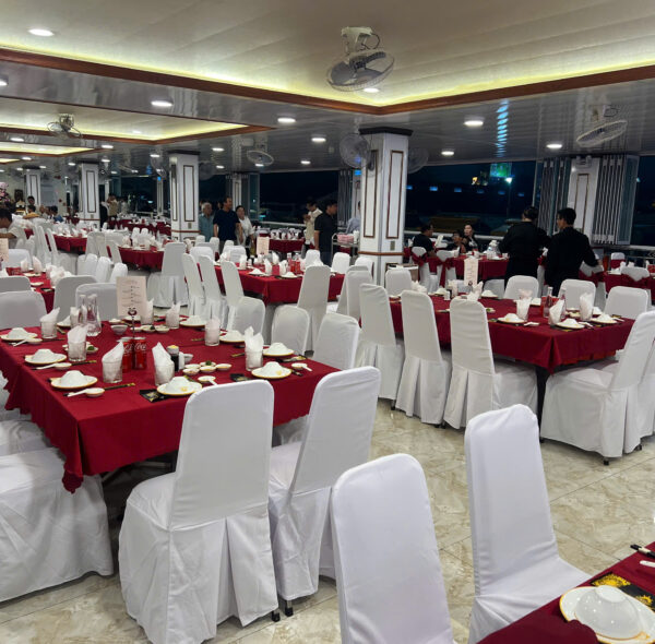 Tàu Bến Nghé. Thời gian từ: 17h30 – 0h30 ngày 31/12/2025. Hotline đặt vé: 0868274689- 0918240466. Giá vé trọn gói bao gồm 01 bữa ăn , chỉ từ 715.000đ/người Áp dụng vào ngày 31/12/2025. Giá đã bao gồm: Vé đi du thuyền + thực đơn + Ở lại trên Tàu đến 0h30 ngày 01/01/2026 . Chỉ nhận nhóm 04 người lớn trở lên