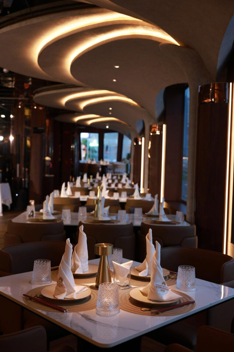 Với sức chứa 150 khách và có cấu trúc 02 tầng: Tầng 1 phục vụ set menu hoặc Buffet, có bố trí 02 phòng VIP riêng với sức chứa mỗi phòng 6 khách và 16 khách tại Tầng 2 ( tầng thượng) là không gian lí tưởng cho những buổi tiệc và sự kiện đặc biệt, khu vực chung có sức chứa 70 khách ( view 360 độ), có bố trí quầy Bar. Cơ cấu khách các tầng có thể thay đổi để đảm tổng sức chứa của Icon Sài Gòn là phục vụ 150 khách.
